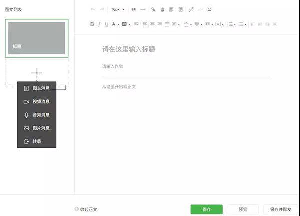 公眾平臺(tái)后臺(tái)的編輯器內(nèi)也增加了轉(zhuǎn)載入口,你可以直接搜索一篇文章,查看是否能轉(zhuǎn)載。