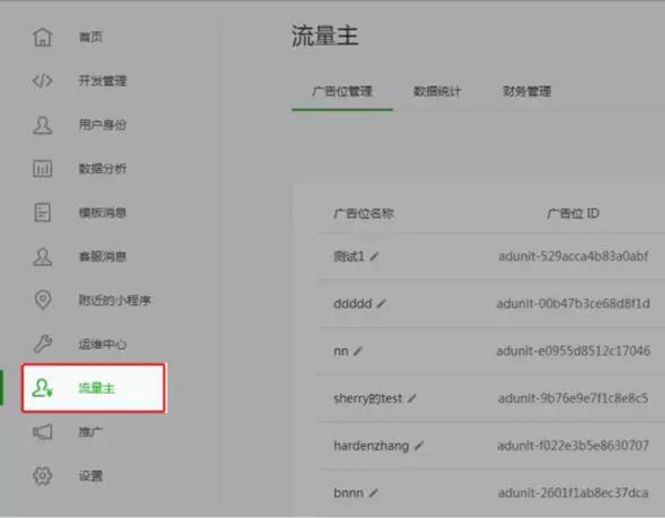 開通流程:進入微信公眾平臺小程序后臺,點擊左側面板“流量主”,滿足開通門檻的小程序開發者直接點擊“開通”即可創建相應的廣告位。