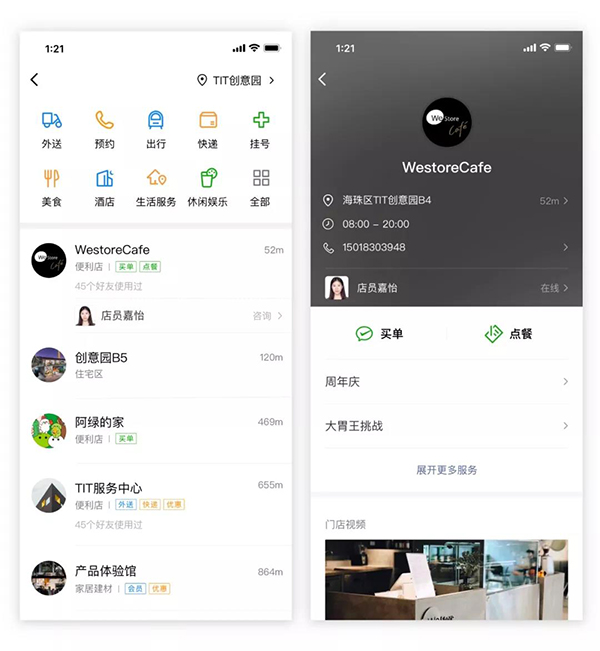 2. 服務標簽:新增點餐、快遞等十多種標簽展示,幫助用戶更清晰篩選服務信息。