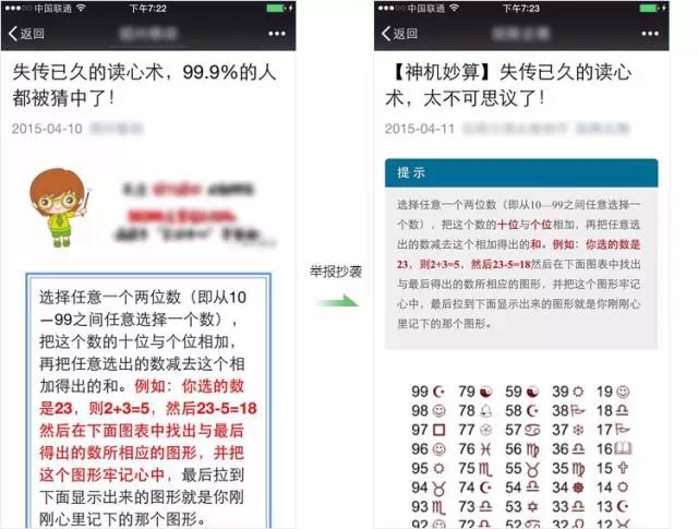 A: 用戶發(fā)現(xiàn)抄襲行為均可進(jìn)行舉報(bào),但是用戶發(fā)起舉報(bào)時(shí),需舉證被抄襲的公眾號(hào)文章,微信公眾平臺(tái)會(huì)給舉證的被抄襲公眾號(hào)發(fā)送確認(rèn)通知。平臺(tái)規(guī)定只有內(nèi)容的權(quán)利人才能就抄襲舉報(bào)進(jìn)行確認(rèn)并發(fā)起舉報(bào):如內(nèi)容確實(shí)為該公眾號(hào)創(chuàng)作,則可以點(diǎn)擊確認(rèn),同時(shí)正式發(fā)起舉報(bào)流程;如被舉報(bào)內(nèi)容并非該公眾號(hào)創(chuàng)作,則不能進(jìn)行確認(rèn)發(fā)起舉報(bào)。對(duì)于諸如“一些公眾號(hào)拿在網(wǎng)上流傳的 或 同樣未經(jīng)授權(quán)的內(nèi)容來舉報(bào)他人抄襲”以及”其并非原作者來舉報(bào)他人抄襲“等的情況,對(duì)于發(fā)現(xiàn)的此類行為微信公眾平臺(tái)將進(jìn)行一定期限內(nèi)的封號(hào)處理,情節(jié)嚴(yán)重的將永久封禁帳號(hào)。