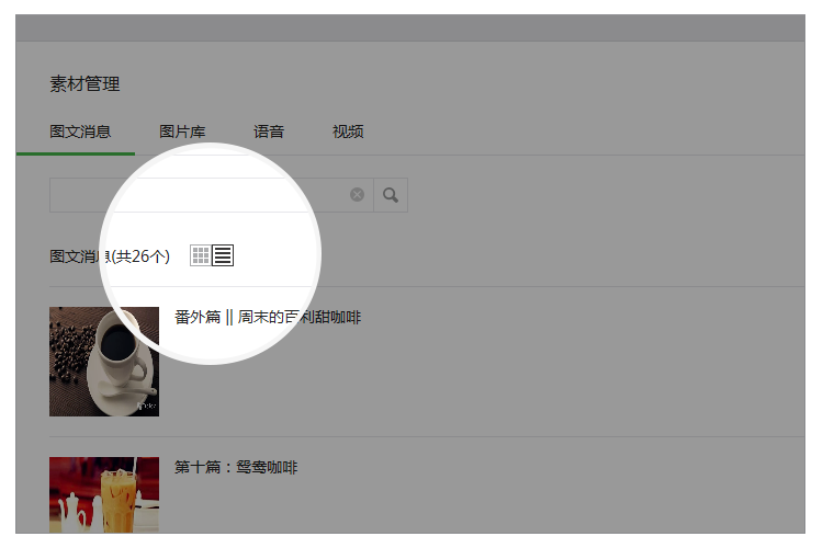 3. 圖文消息素材庫支持卡片和列表兩種展示形式