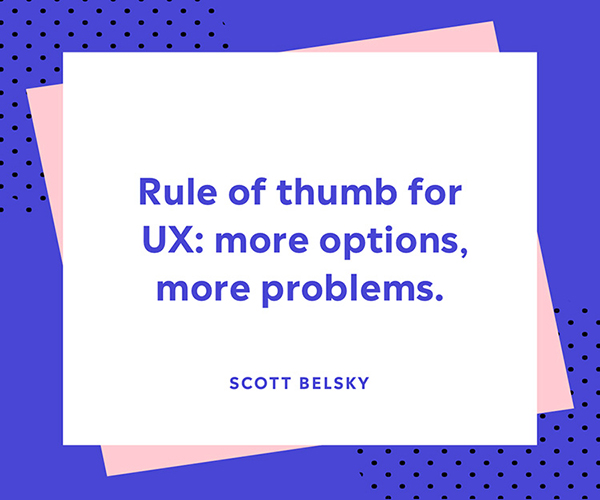 若無法真正理解人與設(shè)備之間的關(guān)系,那么在設(shè)計時,總會不自主的認(rèn)為用戶和設(shè)計者一樣了解產(chǎn)品,或認(rèn)為用戶的「主觀能動性」足夠強(qiáng),繼而為設(shè)備和產(chǎn)品增加更多的功能,更多的選項(xiàng),然而事實(shí)證明這個觀念是錯的。更多的選擇和更多的選項(xiàng)往往會帶來更大的認(rèn)知負(fù)荷,這一點(diǎn)是違反普通人的認(rèn)知習(xí)慣的,人們面對更多選擇時,很難作出決定。所以給用戶少一點(diǎn)選擇,降低認(rèn)知負(fù)荷,提高任務(wù)的完成度,這樣整個用戶歷程也更順暢。