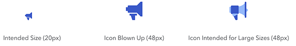 當設計著陸頁的時候,可以會突出產品的功能,這時你需要一些大的圖標作為視覺錨點,這樣的話你很可能會去 Font Awesome 或 Zondicons 這樣的網站找幾個免費的矢量圖標,然后將其放大到你所需要的尺寸。雖說矢量圖可以無損的放大,但是一個通常只有16×16 的圖標放大三四倍,它固然無損,但是在視覺上就顯得頗為不專注了:缺乏細節,總感覺過于矮胖。
