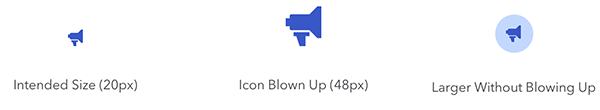 不過,若這些小圖標是你唯一能夠搞得到的素材的話,那么不妨試著將它置于另外一個帶有顏色的圖形當中:這樣的設計不僅能夠讓圖標達到預期的視覺體積,而且看起來要比單純放大,看起來細節會更多一些。