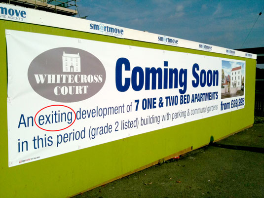 比如說上面這個,本來應該拼成”exciting”令人振奮的發(fā)展(大開發(fā)),結果拼成了”exiting”退出發(fā)展。意思正好截然相反。