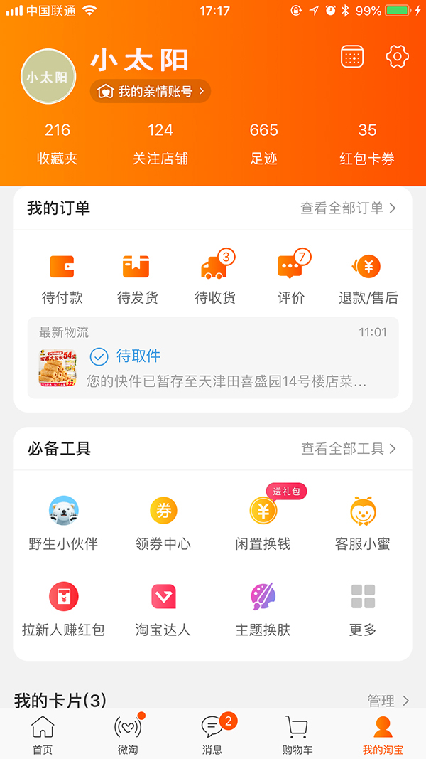 通過工具內容顯性化設計,可實現用戶所見即所得,幫助用戶快速明確的理解到工具所提供的核心功能和服務,有效的減少用戶與工具所提供的核心服務之間的交互步驟和流程,讓用戶在當前工具的內容區完成與工具的核心交互。如:淘寶「我的淘寶」頁面就采用了大量內容顯性化的設計,用戶在當前頁面就能快速掌握到核心的信息。
