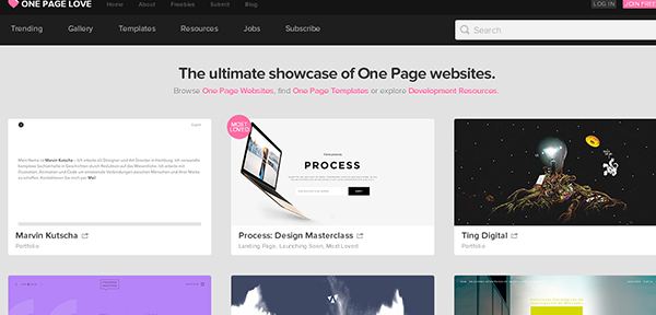 One Page Love網站值得所有從事網站設計的設計師收藏,它一個提供海量單頁模版展示和素材資源的網站,是網頁設計師尋找靈感和獲取精美網頁設計較好的站點,該網站于2006年成立,成立至今一直都發展的很好,截止到目前已收錄30多種行業分類的模版。