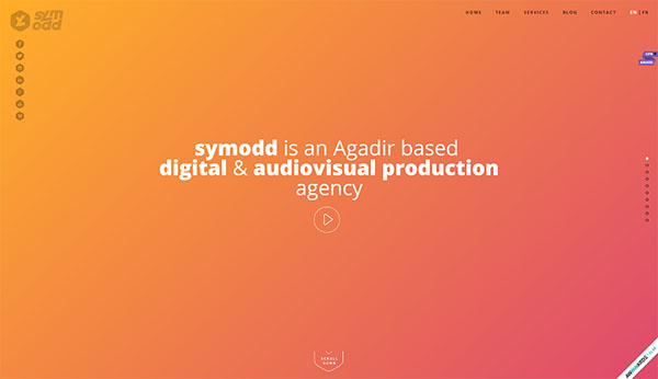瀏覽過Symodd網(wǎng)站的人都應(yīng)該會(huì)注意到,它的首屏或說(shuō)介紹部分,主打由橙色到粉色的全屏漸變背景。這種漸變相對(duì)細(xì)微,因?yàn)檫@兩種色調(diào)差異不大,給人一種非常賞心悅目的感覺。