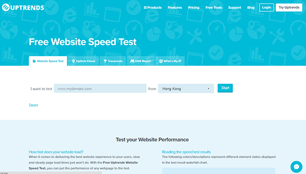 Uptrends是一個非常基本的服務,但提供超過35個國家節(jié)點讓你選擇并執(zhí)行網站速度測試工具。他們的報表分為兩部分,一個瀑布圖及域名群組。域名群組提供一個獨特的視角,因為它把資源歸類到不同來源:⑴方、統(tǒng)計、CDN、社交網站、廣告及第三方。