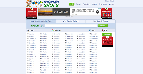 Browsershots可檢查網站的跨瀏覽器兼容性。它是一個開源的在線web應用程序,能夠提供你的網站在不同瀏覽器和操作系統(tǒng)中的截圖畫面。