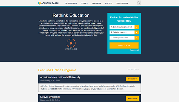 Academic Earth堅信每個人都應該獲得世界一流的教育,或者這也是該網站一直不斷提供一系列免費的在線的課程的原因,這些課程均來自世界頂尖的大學?,F在,我們可以在課堂之外學習原汁原味、富有啟迪的視頻,這些視頻能夠激發你的創造力并且讓你想與他人交流討論。觀看、學習、分享、思辨。