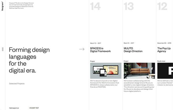 當你⑴次瀏覽一個采用水平滾動導航的網站時,體驗起來可能會覺得非常的奇怪,首先它的物理和視覺運動方向和常規的縱向滾動不同,而且當你使用鼠標滾輪滾動的時候,這種交互的錯位感會極其強烈。其實,想要解決這個問題,需要設計師加入視覺線索來幫助用戶導航,強化瀏覽邏輯和體驗即可。
