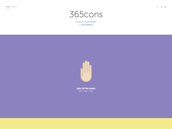 365cons不知道作為設(shè)計師的你是否了解對其有過了解,它是Amy Devereux所制作的每日更新的“圖標(biāo)日記”,這些圖標(biāo)被設(shè)計成不同的樣式,對于設(shè)計師尋找靈感來說是相當(dāng)不錯的選擇,如果現(xiàn)在的你也在迷茫,不知所措的話,不妨多瀏覽些這樣的網(wǎng)站,用其作為靈感來源還是相當(dāng)不錯的哦!