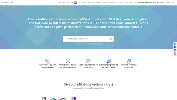 除此之外,Iconshock還允許使用者直接在線上變化不同的配色風格。通常情況下,尋找圖標時往往會受限于它的設計風格和顏色,但Iconshock可以讓使用者自定義顏色、大小或加入配件,使得圖標看起來效果一致,也更能與你的網頁相襯。